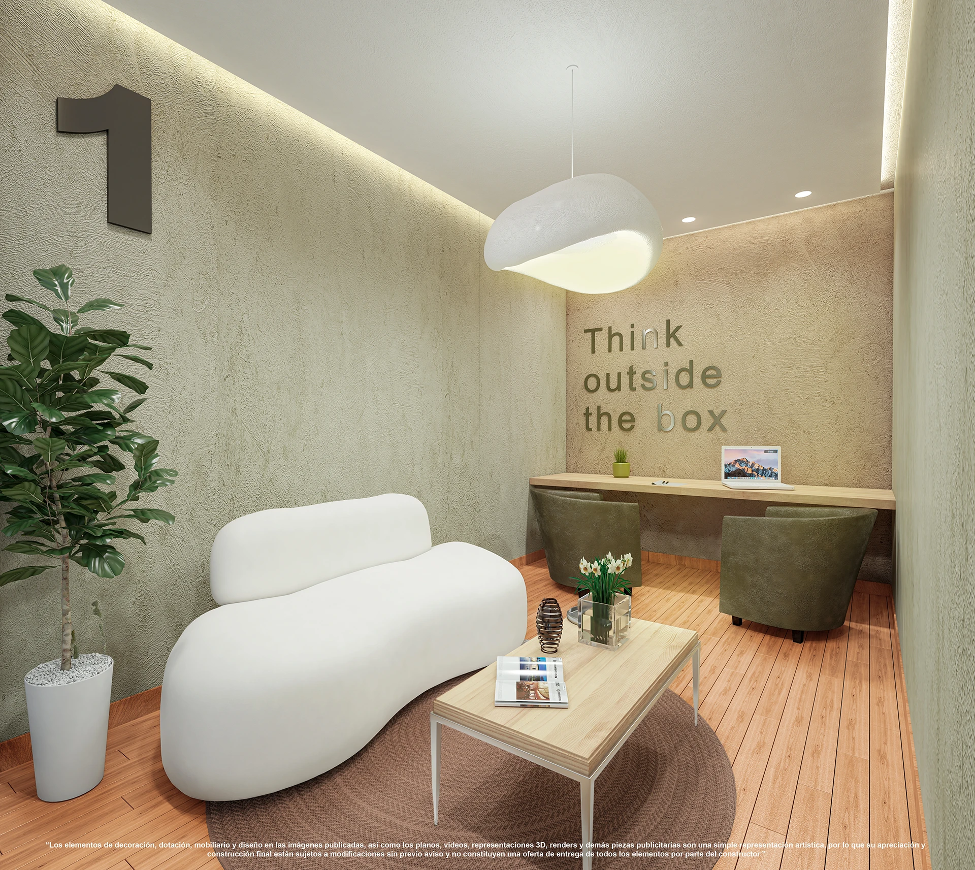 Nota legal: *Las imágenes contenidas en este material son una representación artística del ilustrador, por lo tanto los detalles de diseño, color y especificaciones de materiales están sujetos a modificaciones durante el proceso de construcción. **Los elementos de decoración, dotación, mobiliario y diseño en las imágenes publicadas, así como los planos, vídeos, representaciones 3D, renders y demás piezas publicitarias son una simple representación artística, por lo que su apreciación y construcción final están sujetos a modificaciones sin previo aviso y no constituyen una oferta de entrega de todos los elementos por parte del constructor.