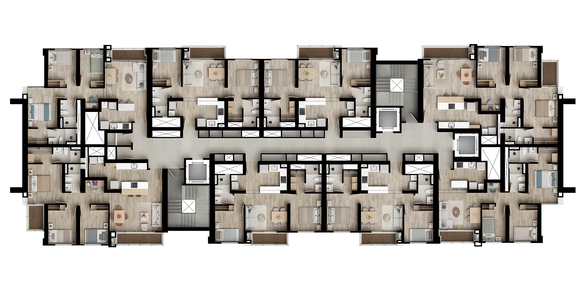 El Proyecto, será desarrollado en 2 etapas así: La primera etapa (Torre 1) cuenta con las siguientes zonas comunes: Portería tipo lobby con sala de espera, Zona de servicios de portería, y se entregarán en el 2do semestre de 2030. Y la segunda Etapa (Torre 2) cuenta son las siguientes zonas comunes: salón de eventos semidotado con zona para cocineta, piscina familiar climatizada (no reglamentaria), sauna y turco, gimnasio y zona de pilates semidotado, salón de juegos semidotado, salón de niños semidotado, espacio para administración semidotado, teatrino exterior, terraza comunal descubierta tipo sky lounge semidotada, zona BBQ, baterías de baños, senderos peatonales y un módulo tradicional de juego infantil y se estima entrega en el segundo semestre de 2033.