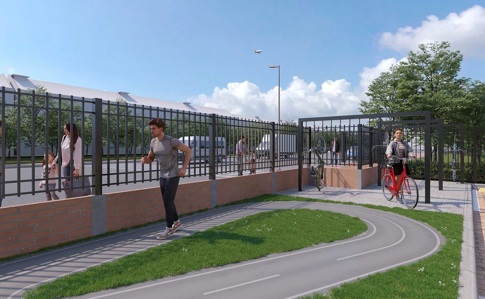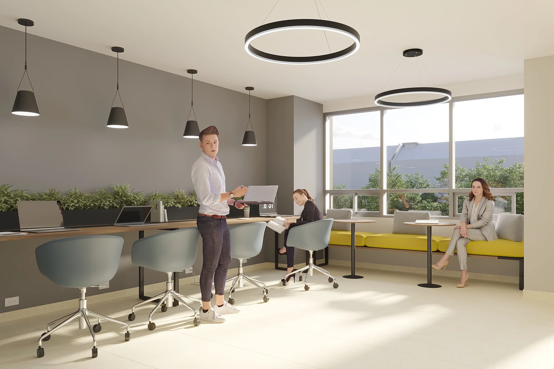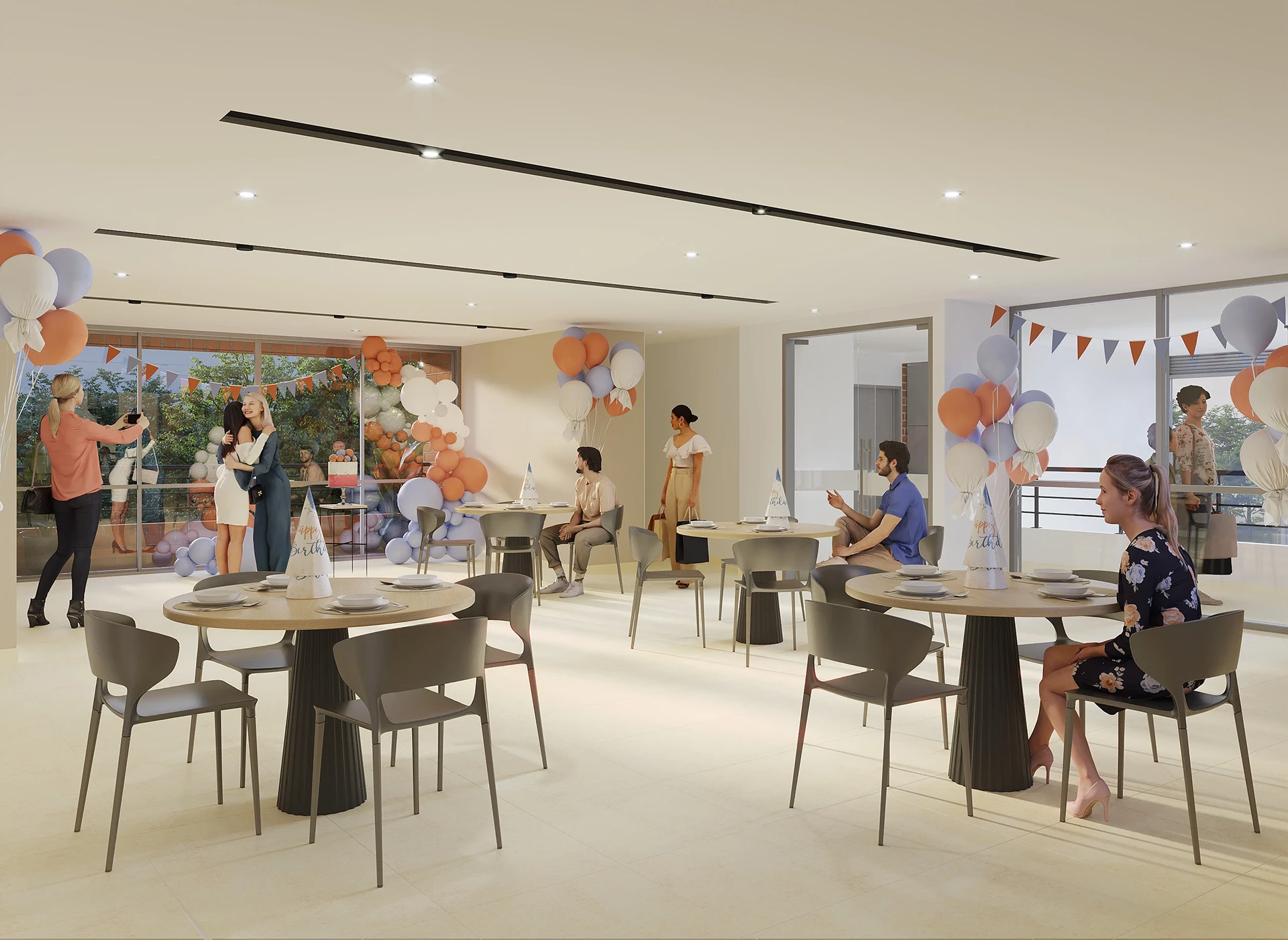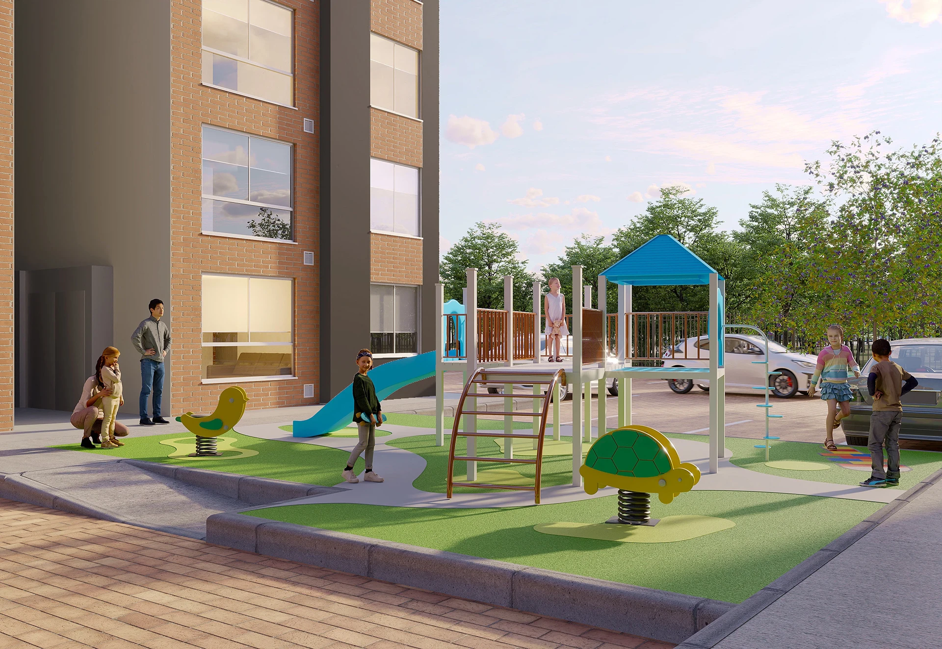 El proyecto cuenta con un edificio para equipamiento comunal con portería, baños y cocineta de servicio para el personal, oficina de administración, cuarto de basuras, subestación eléctrica. juego infantil exterior, zona pet, sendero de trote, bicicleteros comunales y un cuarto de bombas para los tanques. En el segundo nivel se encuentran un salón de eventos con zona para cocineta, gimnasio semidotado, salón de lectura semidotado, salón de niños semidotado y zona de coworking. Las zonas comunes se entregarán durante el segundo semestre del año 2027. Las fechas aquí descritas podrán sufrir modificaciones de acuerdo con las condiciones de mercado, la obtención del punto de equilibrio, en caso de fuerza mayor o caso fortuito, el ritmo de las obras y/o tramites del Proyecto se posterguen.