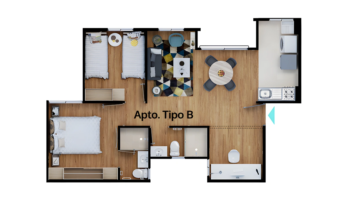 *Se entrega en obra gris. El muro que conforma la tercera alcoba no se entrega con el apartamento.